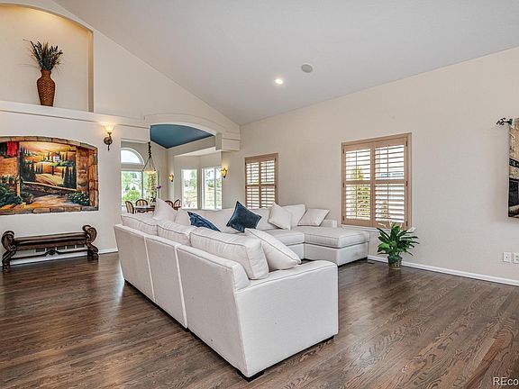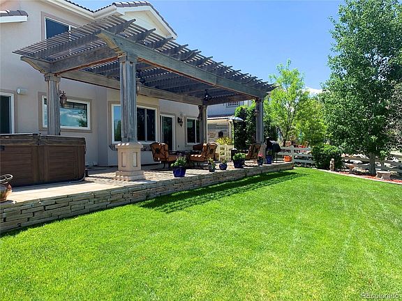 One of the best lots on The Broadlands golf course. Enjoy spectacular sunsets, open space and golf course views. Large flagstone patio with a newer 15K hot tub. Large, private lot backing to hole number 8. Has gorgeous pond, golf course and mountain views from the large flagstone patio with pergola. Newly finished hardwood floors on the entire main level, open floor plan, vaulted ceilings, main floor study. Master bedroom with 5 piece bath that was just fully remodeled. Spa like upgrades that are jaw dropping including heated tile floors, stand alone tub, new shower with seamless glass and curbless poured pan, custom cabinets and all new tile and fixtures. Adams 12 five star schools, parks, trails, 18 hole championship golf course, community pool and so much more. 48 hours notice for acceptance of contract
