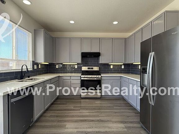 Don't miss out on this picturesque 4 bedroom, 2 bathroom home located in Victorville! Luxury vinyl wood flooring throughout the living spaces and carpet floor in the bedrooms. Spacious living room with lots of natural lighting. The kitchen offers amble amounts of counter space and plenty of cabinetry for extra storage. Fridge, oven, and dishwasher all included!! Large designated dining area perfect for entertaining. Enjoy the cozy ambiance in the loft accented by plenty of windows and carpet flooring. The primary bedroom offers an abundance of space and a walk in closet. The primary bathroom has a standing shower, soaking tub and a private washroom! The guest bedrooms are a good size. The upstairs guest bathroom has plenty of counterspace and also features a standing shower/soaking tub due. In home laundry room with washer and dryer!! This home has a large fully fenced backyard for added privacy. Huge 3 car garage with shop led lights. Close to schools, shopping and I-15 for commuters. Pets may be considered, depending on type and number of pets, owner approval, 3rd party pet screening and increased deposit required. Lease term is twelve months. Renter's liability insurance required. Minimum deposit is equal to one month's rent. When applicable, it may increase to as much as two months' rent.