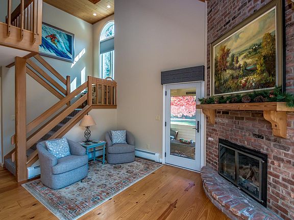 One of the best designs at Wentworth and the perfect village location to enjoy the Jackson lifestyle. This spacious, bright and updated duplex townhouse boasts mountain views across Wentworth Golf Course to the trails of Attitash. 2021 Updates: Beautiful wide plank flooring, new kitchen and bathroom cabinets and granite countertops, painted throughout. (The popcorn ceilings are gone!) A mini split to cool the main living area, new central air for the two ensuite bedrooms. Andersen 400 windows and doors, a new Viessmann boiler and more. An eat-in kitchen, gas log fireplace, living room leading to the large deck and screen porch. The oversized ski closet has room to store your ski equipment & you’re your bike and the air lock entry has a walk-in closet. Cross country ski on Jackson Ski Touring’s miles of trails, walk to golf, lunch spots, fine dining, Jackson Falls, gather at the post office and the library. Short drive to Black Mountain, Wildcat, Attitash and Cranmore.