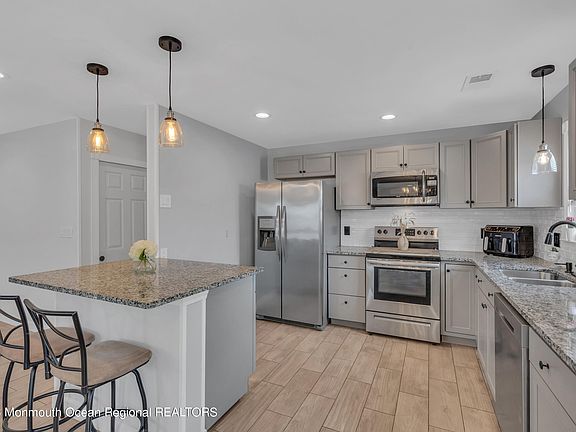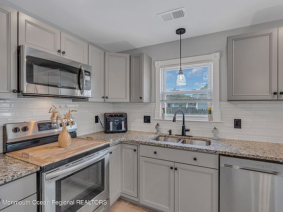 Stunning, completely remodeled condo/home in Concord Village. Open layout, 1104 sq ft. 2 bedrooms, 1.1 baths. Everything has been updated. Beautiful ceramic floors, remodeled kitchen with granite countertops, and stainless steel appliances. Lovely laundry room with washer and dryer. All bathrooms have been updated. The beautiful tree-lined backyard has a new fence. The HOA takes care of lawn care, garbage removal, snow removal, roof, and siding. They are replacing the roof in July/August. The furnace is only 1 year old, and the air conditioner was replaced in 2022. All new insulation was installed in 2018. This home has been impeccably maintained. Amazing location near Jackson, Toms River, and Lakewood.