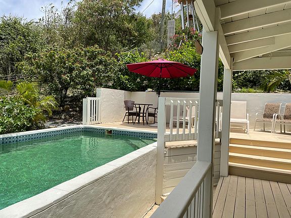 Walk to the Isola Shoppes, restaurants & Dolphin market from Seabiscuit. This 3 bedroom / 3.5 bath masonry villa has a covered wrap around deck to enjoy the Coral Harbor view and breezes while dining and relaxing. The large pool surrounded by beautiful gardens is located off of the main living area and is very private. Walk into the great room thru custom mahogany doors to kitchen, dining, living area and 1/2 bath. Up the internal staircase to 2 bedrooms / 2 en-suite bathes. As you walk thru the gate from the driveway there is a beautiful stone shower to rinse of from your beach time. Past the shower is a new additional third bedroom / with en-suite bath. Priced to sell this property is a must see.