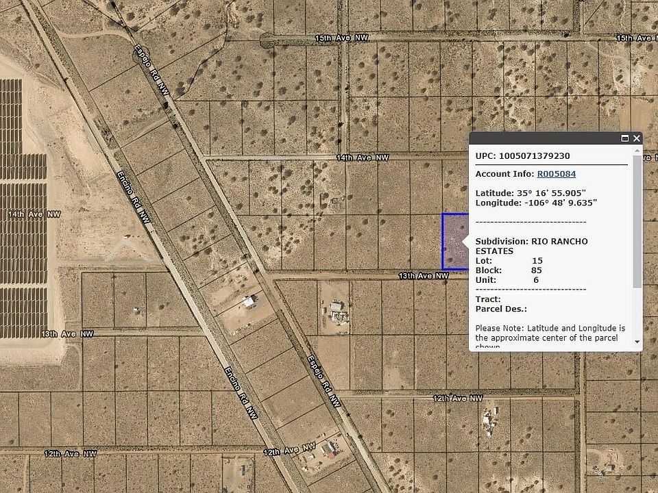 Welcome to this wonderful county property in Unit 6. One acre to build your dream on or to use as an investment. There is already a home on this street and Electricity is on Espejo Rd. and this property is only approximately 1 mile to the City of Rio Rancho Bulk Fill Water Station on 21st. St. and Northern Blvd.