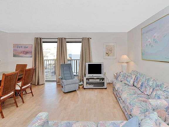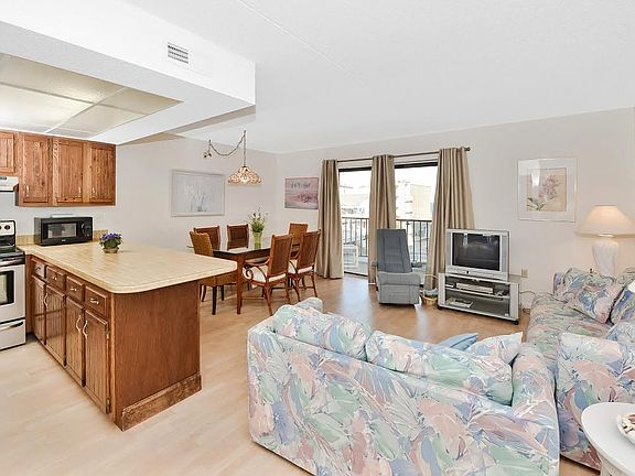 Just reduced! Captivating 3rd Fl Unit in an intimate 44-unit, well-managed (low condo fees and never had a special assessment for capitalimprovements) four-floor Ocean Block, Elevator, Masonry Building with plentyof off-street parking and storage space that looks directly east towards theocean providing a beautiful view through an 8-foot wide sliding glass dooropening onto a large balcony!This unit is Exceptional for many reasons, not the least of which is that it is more than 200 Sq. Ft. Larger than most other one-bedroom units in OceanCity and located just steps from the Beach close to restaurants,entertainment, a bus stop, and Northside Park in quiet North Ocean City. It is also Unique because, unlike most other one-bedroom units in Ocean City,this unit has Two Full baths,