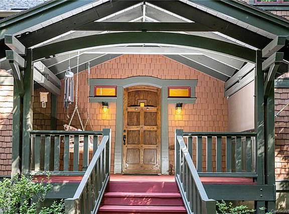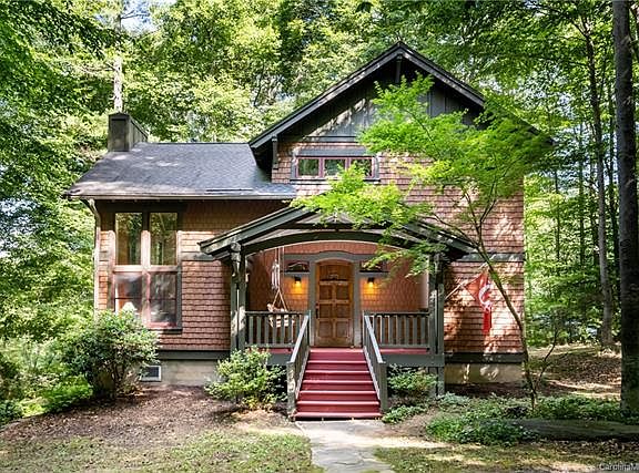 Exceptional Cedar Shake Arts & Crafts Cottage nestled in the woods. Be inspired by this one of a kind craftsmanship. 23 foot Post & Beam Cathedral Ceiling, Floor to ceiling windows, Arched doorways, Wood inlays, Custom built-ins, doors, cabinets and moldings throughout. A 3-car detached garage with large unfinished room above offers additional flexible work-live space above. Minutes to shopping and hiking, dead end of the road privacy.