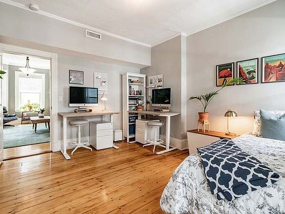 Bedroom with huge closet available for rent in a 2 bed / 1 bath historic charmer in Roslindale close to bus lines to the T and walkable to Target & local cafes! Enjoy the charm of hardwood floors, tall ceilings and historic details with modern upgrades like In-unit Washer/dryer, Central AC and stainless steel appliances. Rent includes an off street parking spot. Unit has a front balcony and backyard. No Pets Allowed. This is a shared apartment with only 1 other person living there the 33 year old owner. Utilities not included, utilities split with other roommate come out to about $150 per month. Room can come empty or partially furnished with a queen bed frame / mattress and desk.