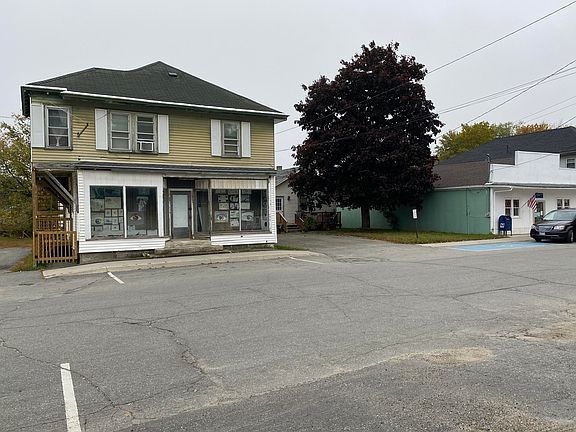 Two building investment property for sale in Howland, Maine. Building #1 is 16 Main Street- a single family ranch style home with 2-bedrooms currently rented at $875/month (heat not included). Home sits on 1/2 foundation and 1/2 crawlspace and has oil FHA heat, electric HW heater & public water and sewer. Building #2 has 3 units. 1 commercial storefront space (currently used as storage), a 2-bed unit and a 1-bed unit. The one-bedroom is currently rented at $525/month and has open living/kitchen area and a heat pump for both heat and AC, and is located on the ground floor. The 2-bedroom unit is on the second floor and has oil FHA heat, a small breakfast nook and an unheated enclosed porch. Currently rented for $800 per month. Live in house and rent out rest for good income and mortgage coverage.