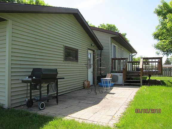 ALL New Windows!!! Nice affordable Rambler in small town with big lot makes this a place to call home! 3 bedrooms on main floor plus 2 bedrooms in basement that just need egress windows. New stainless steel fridge and stove. Patio deck plus paver patio behind garage. Vinyl siding! Double heated garage next to house plus a single garage in back yard.