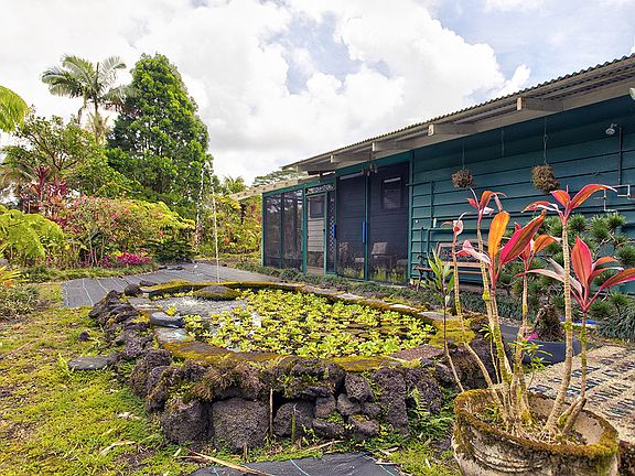 This hidden gem near Pahoa has so many features to love at an affordable price! The darling 2 bedroom plantation style home is in good shape with most of the original hardwood floors. The kitchen is fully equipped with pots, pans, dishes, silverware and glassware if the buyer would like to have them. The 200 sq ft screened-in porch looks out to a bubbling fountain and the amazing botanical garden. Approximately one half of this 1.5 acre property is planted with mature ornamental plants, fruit trees and tall foliage trees with pathways throughout creating a walking mediation garden. A second gazebo-like structure houses a hot tub that is only 2 years old. The 816 sq ft carport/workshop offers many possibilities for projects and storage. Outside the carport there is a potting area for those who want to continue to work on the garden. County water, paved County roads and mail delivery round out all the many benefits of this overlooked little corner of the world. Priced to sell!