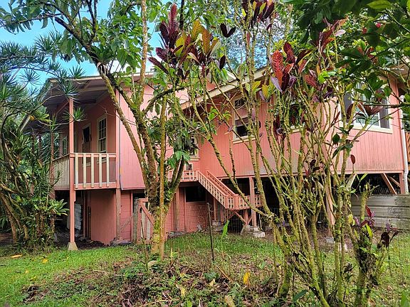 This classic 2/2 charmer is ready for you. Home boasts real hard wood floors, and recently remodelled kitchen and main bathroom. Home sits high off the ground, with partially wrap around lanai's. The wood stove in living room can take the morning chill off. Under home has around 6 ft. of head room, with an extra bathroom, which almost doubles the usable square footage. A 2020 permit shows 17 Panels, 4.9WDC, on roof, ready for a battery and inverter.