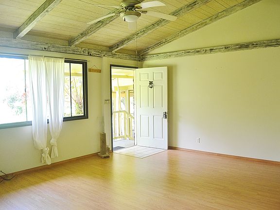OPPORTUNITY KNOCKING! This is a great property for your EXTENDED FAMILY or AT HOME BUSINESS. Main house is a comfortable 3 bedroom, two bath home with open beam ceiling and all new flooring. This purchase includes a second lot with a large converted garage that could be a living area or workshop. Both properties are gated and fenced with grass yard. TMK for second lot is 3-1-4-80-83. Square footage for this property does not match County records. This building does has it's own meter and 220 wiring. Both properties share the large water catchment and must be sold together. Enjoy the privacy and space that two lots and two buildings provide.