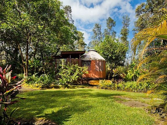 Cute as a button 2 bedroom 1 bath home located in Nanawale Estates Subdivision. Come and sit on the peaceful back lanai and enjoy all the beautiful landscape with mature fruit trees: Avocado, Orange, Tangerine, Mango, Mountain apple, Ulu (Breadfruit) and Rambutan etc. Unique outside bathroom and shower on the back lanai. A custom Yurt with a small patio great for guest or anything you can imagine. Want more land, adjoining to this home MLS 669340 and 669341 listed for sale to make a L shape for privacy.