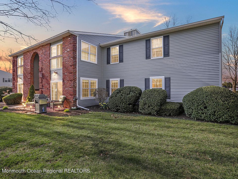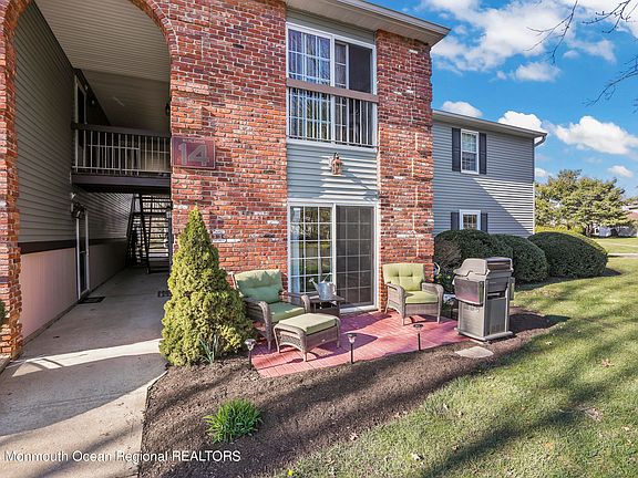This move-in-ready 1st floor condo in the Deerbrook community is waiting for you. Upon entering you'll find an open concept living space featuring new flooring & fresh paint which runs through the unit. The updated kitchen boasts granite countertops, large wooden cabinetry & a sparkling tile backsplash. This conveniently opens to your personal laundry room complete with pantry storage. The bedrooms each feature generous walk-in closets with built-ins. The 2 remodeled bathrooms are conveniently situated to share the standup shower. The sunny office, which could easily convert to a 3rd bedroom, features a slider which opens to the cheerful back patio. Additional bonuses include new windows, ceiling fans, high hat lighting new moldings, newer HWH & furnace. Plus, the association has recently updated the siding, roof & shutters. Finally, enjoy easy access to route 9 shopping, NYC bus station & Freehold Township schools.