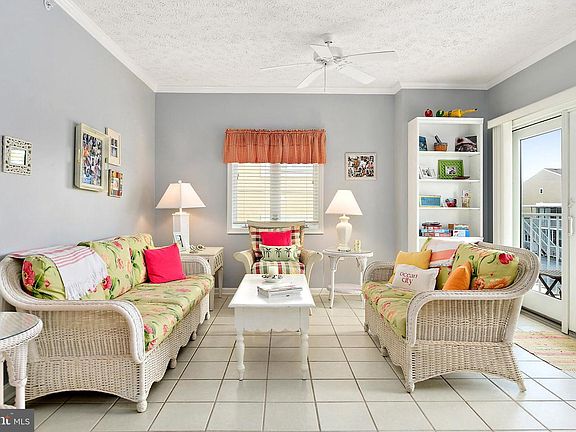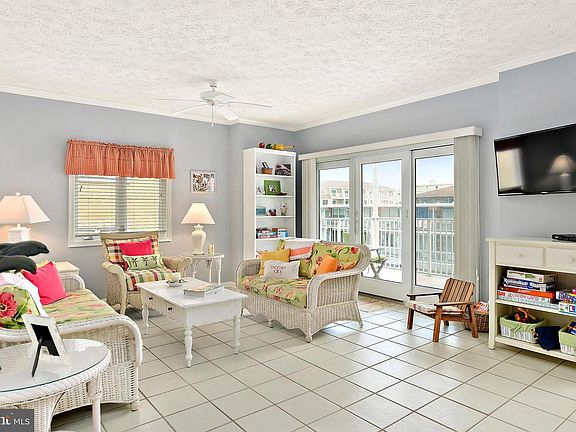 Welcome to Sea Palms #202, one of the largest ocean-block condos available on the market. Boasting 3 bedrooms, each with an en-suite bath, spacious open floor plan, large kitchen, and one of the largest balconies in Ocean City, you'll have plenty of space to spread out and entertain. Step inside to find abundant character throughout, including coastal beadboard details. The flowing tile floors are ideal for beach living, and the gas fireplace offers a great space to stay warm in the off-season. The kitchen is sure to impress the chef of the family with more than enough counter space, plenty of cabinet storage, and a breakfast bar for quick dining before hitting the beach. Being an end unit means you have abundant natural light. Relax on the oversized balcony where you can soak in views of the ocean and bay, capturing exceptional sunrises and sunsets. The Sea Palms building offers a private elevator for easy access, and you can catch some sun and stellar views on the rooftop terrace. Ideally located in mid-town Ocean City, where you can walk to restaurants, shops, mini-golf, and more. Catch the bus to the boardwalk, or travel just across the street to the new 45th St Plaza with fun shops, restaurants, and mini golf. Whether you're looking for the perfect beach retreat or a fantastic rental property (not a current rental, but estimates come in over $35,000 GRI a year), you're sure to be impressed by Sea Palms #202.