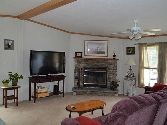 BEAUTIFULLY MAINTAINED HOME OFFERING COMFORT AND CONVENIENCE IN THE WELL MANAGED SUNNY ACRES PARK. NESTLED AMOUNG A TREED BACK YARD AT THE END OF A CUL D SAC, THIS PRETTY HOME HAS CATHEDRAL CEILINGS, CENTRAL AIR AND FIREPLACE. FULLY APPLIANCED KITCHEN OPENS INTO THE SUNFILLED LIVING ROOM & DINING AREA. THE MASTER BEDROOM W/BATH HAS DOUBLE LAVS, SOAKING TUB AND SEPARATE SHOWER. ADDITIONAL TWO BEDROOMS SHARE A FULL BATH. SEPARATE LAUNDRY ROOM & CLOSETS APLENTY. A LARGE DECK FOR BBQS & ENTERTAINING & SHED FOR STORAGE. NEWER ROOF, NEW CARPET & NEW HOT WATER HEATER. MONTHLY RENTAL FEE INCLUDES WATER USAGE, SEPTIC MAINTENANCE, TRASH COLLECTION & SNOW REMOVAL. A CONCIENTIOUS SELLER THAT HAS MAINTAINED THE INTEGRITY AND UTILITY OF THIS RARE OFFERING! BUYERS ARE REQUIRED TO HAVE SUNNY ACRES PARK APPROVAL.