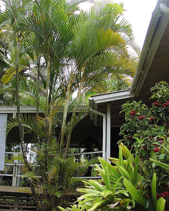 SOLD... Very tropical setting - Mature growth of coconut trees, palms and fruit trees and plants. Very private and relaxing (seclusion) but close to conveniences. Square footage of home includes all covered porches, home sits on 2 lots for a total of .38 acres. Well cared for home many updates but still has the rustic cottage feel of old Hawaii. 24 hour live camera feed for remote viewing when you are away.