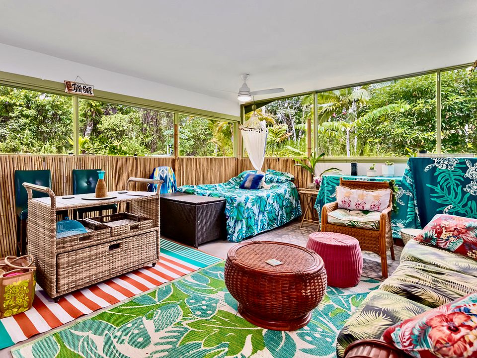 Brand-new refrigeratorAbundant lilikoiOutdoor showerLuxury vinyl plank flooringNewer laminate countertopsUpdated ceiling fansPaved road