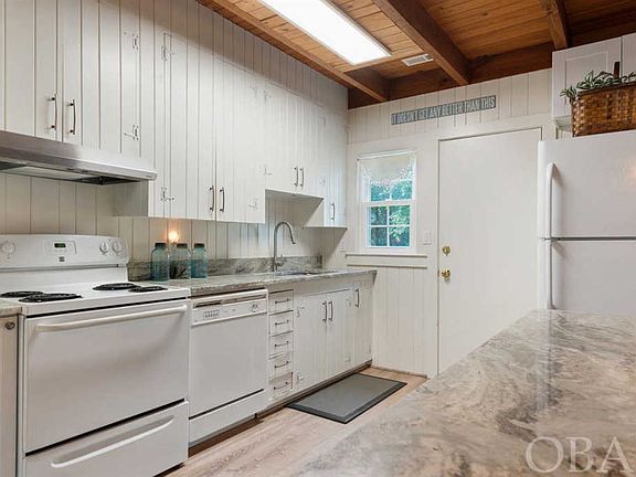 You are going to love this OBX Classic Home! Built by Newport News Ship Builder, Mo Vaughan, in 1957, it was the first house on Fifth Avenue! Everyone loves the avenues with all the wonderful live oaks. Gorgeous Juniper beamed ceilings and tongue and groove walls keep the original charm of this home. One story living with 3 bedrooms and one bath and an open kitchen & living area where you can dine in front of the fireplace. It's flanked by book shelves to fill with all your special treasures. The kitchen gives a nod to its era and has been upgraded with built ins and granite counter tops and stainless sink. You'll find an outside shower and a wonderful tool shed where all your projects can take shape. This fantastic lot on Fifth Ave is close to the beach and has never flooded. There's room for a pool & pool house or just whatever your family would enjoy. The owners have lovingly cared for and maintained this home and it shows. Move in ready!
