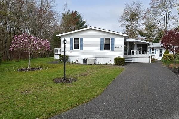 This home is Priced to sell! This beautifully maintained double wide home is located in the sought after South Meadow Village. The home is situated on a private corner lot in a smaller cluster for the park. The windows, hot water tank, and central air are newer, the shed is hand built with plenty of space, and It has a nice open floor plan. The home comes fully applianced, with a large three season room, and a deck with an electric awning. On top of all that the yard is beautifully maintained with multiple garden areas and a patio. The park has a club house, a pool, scenic Bocce sitting area, a library, a clothing boutique, and more. A 55 plus community. This one will not last, call today for your private viewing. There is an additional $30,000. co-op fee to purchase your corporate share (returnable upon re-sale) which is not included in the sale price