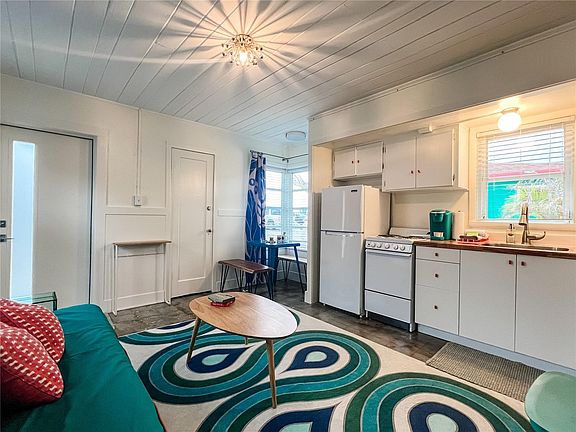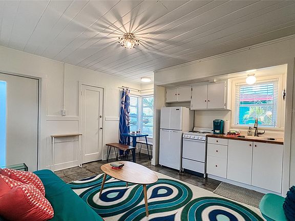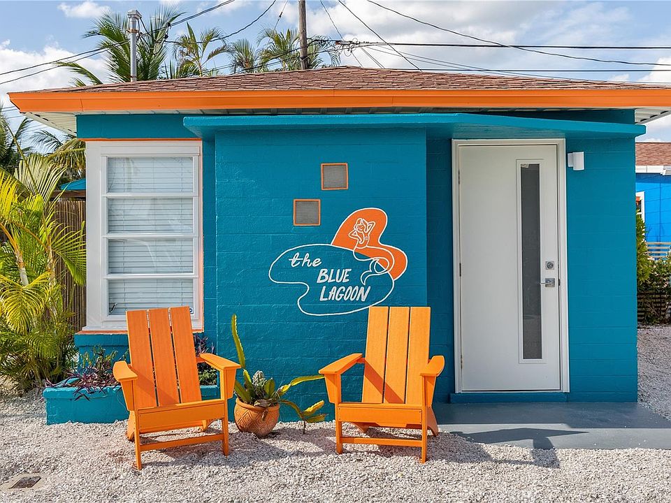 This one-bedroom, one-bathroom cottage named The Blue Lagoon features a spacious, bright living room with kitchen and the ability to offer daily rentals. The exterior offers ‘Old Florida’ charm while the interior features bright colored retro decor and sleeps four. A new water heater, new kitchen cabinets and new kitchen appliances make this cottage maintenance free. Just a few steps across the street is Sunset Beach. Delicious food and tiki bars are very nearby. Guests will love the few steps to the sand and multitude of entertainment options close by like dolphin tours, pirate ship tour, sunset sailing. Guests will also love the close proximity to John's Pass Village & Boardwalk, Pinellas County's #1 tourist attraction- it's only an 8 minute drive or short trolley ride away. Guests will rave over the 100+ merchants with unique retail shops, restaurants, shelling and fishing tours, boat and jet ski rentals, and parasailing. This cottage can be purchased in tandem with one duplex, three cottages and one vacant lot or individually.