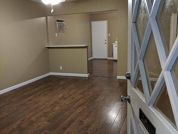 Old Town Clovis Cutie. This 2bd/1bath apartment is walking distance to old town Clovis and just about everything your heart desires. Located in a small and cozy complex, this unit shares zero walls with other tenants. It's the largest unit in the complex with a WiFi stove (it's pretty cool), and recently was remodeled with a 20.7 cubic foot fridge, laminate floors in the living room and kitchen, and refinished kitchen cabinets. There is a shared garage (you get your own garage space) and you have a private storage closet in the shared onsite laundry room. The main bedroom even has its own patio door facing the common area. This unit will not last long. One year lease. Minimum 670 Credit Score and Monthly Gross income 3x Rent Required. No pets. DO NOT ENTER COMPLEX/PROPERTY PREMISES WITHOUT PERMISSION. Owner pays water, sewer, trash, and gardening. Tenant responsible for PGE and other utilities. One year renewable lease, although first year ends July 1st. One month rent and one month security deposit due at lease signing. No pets, no smoking/vaping on the property.