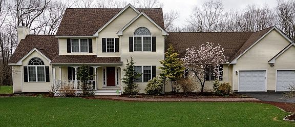 This picturesque 4 BR / 4 Bath colonial home is up for grabs and you don't want to miss it. The open foyer will lead you past the formal dining and living rooms into the designer eat-in kitchen complete with maple cabinets, granite counters, gas stove and huge center island. Step down into the large family room with cathedral ceilings and a pellet stove that can heat the whole house! You will also find solar panels on the roof which have reduced this homes electricity bill to just around $13 per month! Let's not forget the private first floor guest bedroom with adjacent full bath. With its separate heating/cooling system, it is the perfect space for in-laws or as an au pair suite. Upstairs also offers a large master bedroom with cathedral ceilings and walk-in closet. Even better, this home contains a whole house generator, operating on LP gas so you'll never have to worry. All of this is located on a private, beautifully landscaped 2.36 acre lot, which backs up to 600 acres of conservation land. Roof on the main house is also only one year old. Look no further!