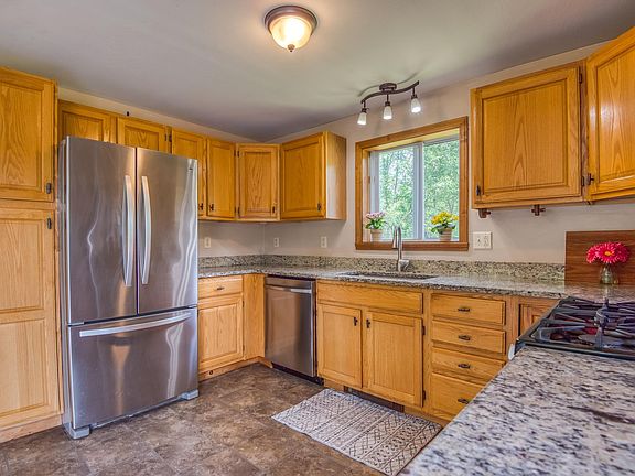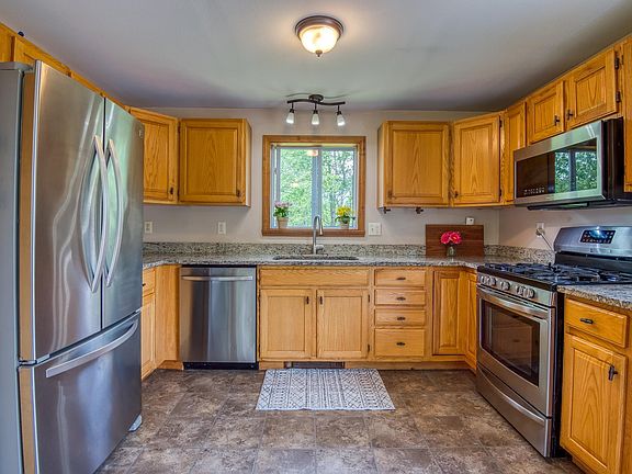 This charming raised ranch on just over 2 acres is perfect for those looking to embrace the tranquility of mountain living with all the modern comforts. Step inside this split level ranch to discover a main floor that's warm and inviting. The hardwood floors lead you into the open concept living space & kitchen that includes stainless steel appliances and granite counter tops. Enjoy having access to the walk out deck, perfect for the summer grilling season! In the colder months, the gas stove will warm your soul. Venture down the hall to find a modern full bath, 2 bedrooms and the the primary bedroom with a fully updated bathroom. The lower level can be used in a variety of ways. Currently setup as a home office & gym. Complete with new flooring! The attached garage could be used for storage, a work shop, or potentially finished off into additional living space! The foundation for a 26x38 detached garage has already laid. The plans are for a 2 car garage with a snowmobile door to allow for direct access to the trails from the property! Outside there's room to breathe & space to grow including the potential for homesteading with a garden area complemented by an outbuilding for all your gardening tools and equipment or for raising animals. Don’t forget, we’re just moments away from the enchanting Santa’s Village and the fully restored Waumbek Golf Course & clubhouse, you'll find yourself immersed in the serene beauty of Jefferson while enjoying easy access to local amenities.