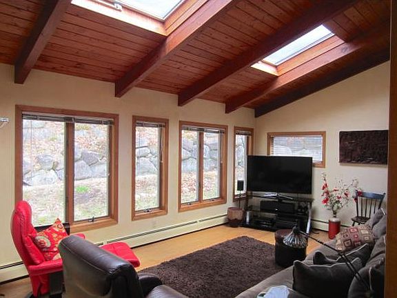 A lot to like here ! One of the most convenient locations in town near the medical center in an area of fine homes. Easy access to miles of Drummer Hill Trails and over to Goose Pond. Quality Contemporary home offers free-flowing layout, natural lighting, vaulted ceilings, skylights, double sided fireplace, master suite with bath, second bedroom with its own bath and sliders onto the deck. Rec/Family room with 3/4 bath. 12 X 10 storage shed with electricity. Really nicely maintained. Great property.