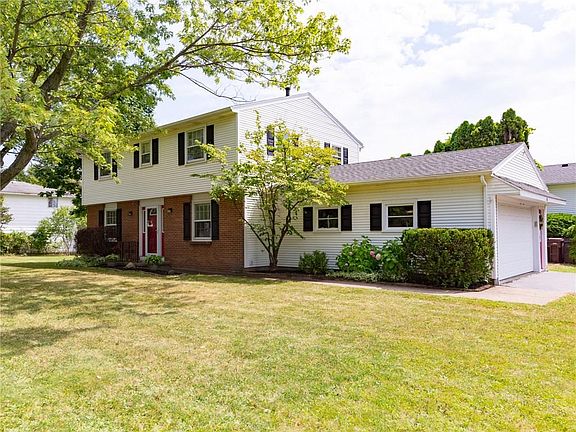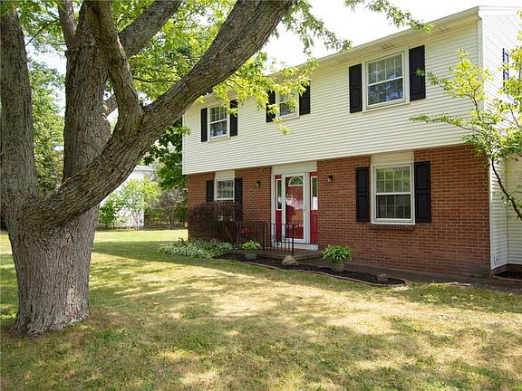 Tomorrow means SOLD on this well kept Colonial. You will love the classic look of the white vinyl siding with black shutters and red door! It also has a huge deck outside! Inside you will find a large Great Room, Formal Dining Room with parquet flooring and a spacious eat in kitchen with appliances included. The full bath is on second level, with powder rooms on the first floor and basement. Nice size finished Rec Room in basement too! Did I mention there are two walk in closets in the Master Bedroom!!!