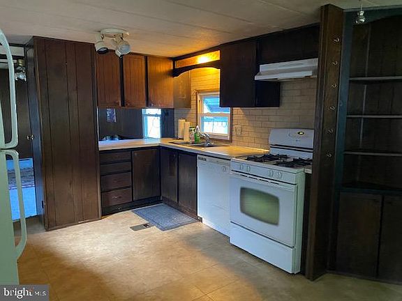 This community is 55 and older at Oak Tree Mobile Home Park. Very roomy kitchen with bow window, pantry and desk area. Living room with bar area for the kitchen counter. Two bedrooms one full bath with laundry area (washer and dryer included) Window unit air conditioning and a large screened in porch. Ceiling fans, gas stove, dishwasher and newer windows. Built-in closets in both bedrooms. The backyard has a shed for extra storage. Buyer must be approved by park. Home needs some freshening up. Newer skirting, and paved parking spot. Lot rent is $433.00 per month