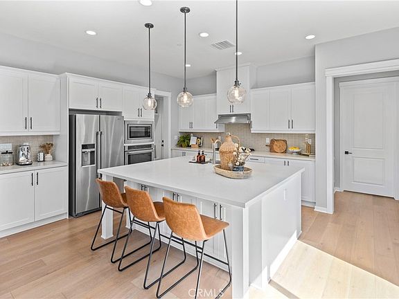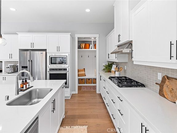 Welcome home to 14 Alienta, located in the Reverie neighborhood of the award-winning community of Rancho Mission Viejo! This highly upgraded home is located on a corner lot and features 4 bedrooms, a loft, and 3.5 bathrooms. Enter into an open-concept floor plan, where the kitchen flows seamlessly into the large great room and separate dining room. The great room boasts custom cabinetry, an accent shiplap wall, and numerous windows that allow natural light to fill the space. The kitchen showcases an oversized island with quartz countertops, ceramic tile backsplash, and stainless steel Maytag appliances. Adjacent to the kitchen is a functional mudroom with stylish bench seating and a walk-in pantry. Retreat to the first-floor primary suite, complete with glass built-ins, windows overlooking the backyard, and a bathroom featuring a large soaking tub, a walk-in shower, and a spacious walk-in closet. Another bedroom with an en-suite bathroom is also located on the first floor, along with a fully renovated powder room featuring a marble vanity, wallpaper, and shiplap accents. Additionally, a designer laundry room offers gorgeous oak countertops, herringbone Cloe tile, and a storage closet. Upstairs, you’ll find a loft with a custom built-in office space, a dual-sink bathroom, and two additional bedrooms—one featuring Roman Clay walls and the other with colorful floral wallpaper. The two-car garage is thoughtfully designed with built-in cabinetry, epoxy flooring, and overhead storage racks, providing ample storage space. Other highlights of the home include new paint throughout, custom wood trim casings, roman shades, engineered hardwood flooring, and solar panels. Relax in your private backyard by the custom gas fireplace or enjoy the numerous amenities Rancho Mission Viejo has to offer. Resort-style amenities include multiple pools, fitness centers, parks, tennis and pickleball courts, a dog park, hiking trails, and so much more!