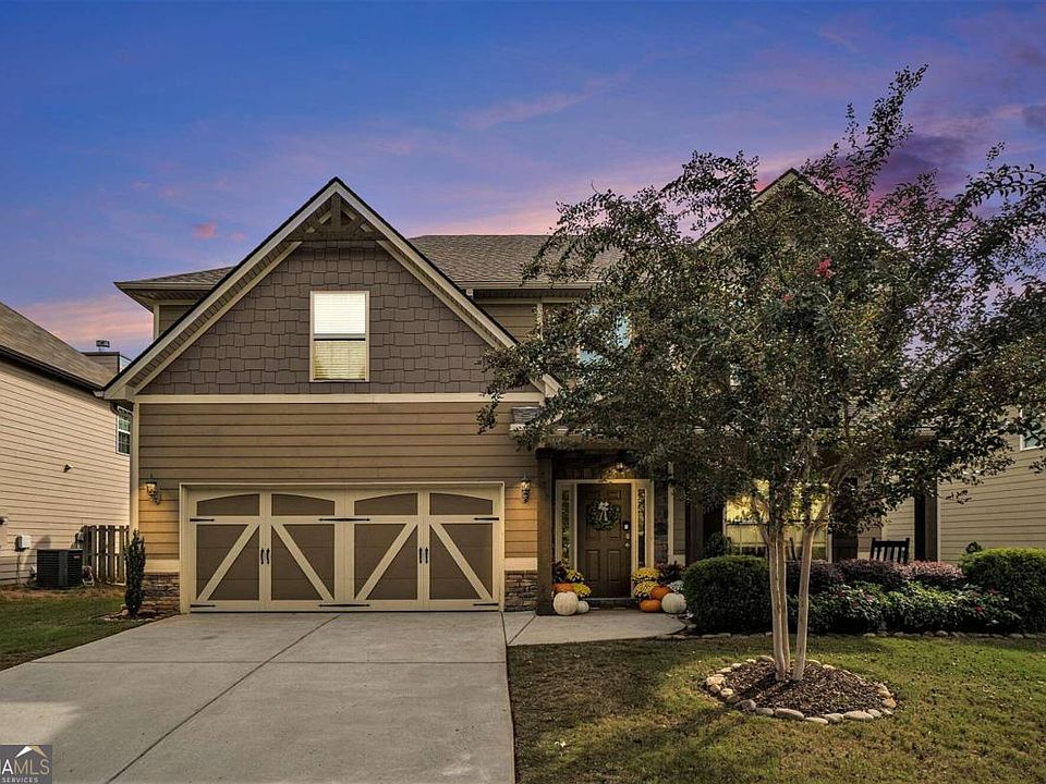 Want SMART HOME TECHNOLOGY and GREAT STORAGE THROUGHOUT, with a LOCATION that is 2 miles from Ashley Park shopping and 2.5 miles from Piedmont Newnan Hospital? Here you go! Classic Craftsman Styling with a BUILDER'S SIGNATURE GAME DAY PORCH W/FULLY STONE WRAPPED Fireplace, and a fenced back yard for pets and privacy!! Roof replaced in 2021. 4 bed/ 2.5 baths. Engineered hardwood on the main floor, with a carpet allowance for upstairs. Open Kitchen concept w / Granite Counters throughout + island, pantry, breakfast area & living room views. Separate Formal Dining Rm feat. Coffered Ceilings & Wainscoting. SPACIOUS Great room features a beautifully tiled fireplace. Luxurious Master Suite has 2 HUGE Walk In closets, granite double / designer drop-in sink vanity, separate shower & soaking garden tub. Amenities center, park, and pool are RIGHT ACROSS THE STREET, so you'll have all the benefits of those fun things without all the hassle of upkeep.