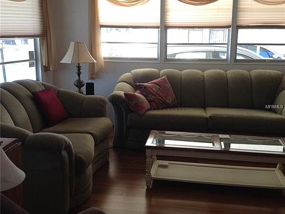 Well maintained two bedroom two bath unfurnished mobile home located in a well established active 55+ community. Living area is light and bright with lots of windows, beautiful Bambo flooring, breakfast bar, utility shed has washer and dryer. Glassed in Florida room, tinted windows. No Pet Section. Manager on site. Maintenance fee includes: cable, water, sewer, trash, grass cutting, recreation center, heated pool. Co op share is included in the price. Gated community