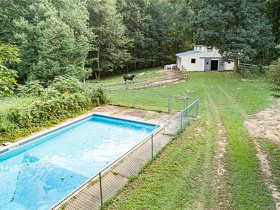 Bring your horses home! This 4.75 acre property has a two story barn with 4 run in style stalls, with direct access to Lake Chamberlin Regional Water Authority trails and close to Bethany airport for shows and ring riding. Pastures surround this 3 bedroom, one level living with new construction windows for views throughout. Walk up attic could be finished for additional living space. There is a bonus enclosed sunroom as well as Trex deck off the back and inground pool overlooking the barn. Who wouldn't want to float and look at the horses? House roof is just two years old, Hardie board siding, water filtration in place, curtain drain installed. Barn has a metal roof and slip board fencing. Welcome Home...
