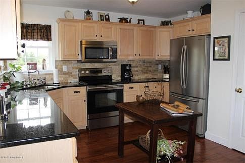 This Charming 3 Bedroom 2 1/2 Bath Ranch is Situated on a Gorgeous 1.42 Acre Lot. & has 3662 Total Finished SQ FT. Features a Huge Great Room with Fireplace, Lots of Windows, GREAT OPEN FLOOR PLAN with SPLIT BEDROOM DESIGN. Stunning eat in Kitchen w/ Top of the Stainless Line appliances, Granite Counter Tops,Travertine Back Splash. Gorgeous Wood Flooring throughout. Romantic Master Bedroom Suite w/ Private Master Bath and huge walk in closet. 2 more Bedrooms and 2nd Full Bath complete the first floor. The Partially Finished basement offers a very spacious Family room, Entertainment center. The Deck on the Rear offers a marvelous view of this very peaceful setting. There is a 2 /2 Car Attached Side Entry Garage. ONLY 12 Minutes to Gene Snyder at Taylorsville Rd.