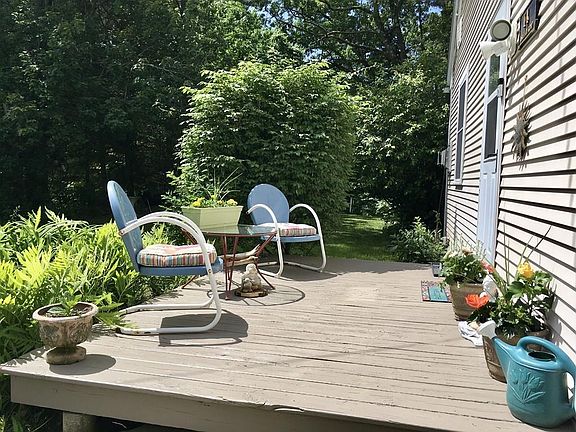 Adorable Cape on 1/2 acre of private blooming gardens and lush landscaping. Updated kitchen with center island and recessed lighting with newer stainless appliances. Large bedrooms on second floor and first floor bedrooms and bathroom for single level living. Stay cozy & warm in the winter with the propane stove in the living room and cool in the summer with central air. Replacement windows and well insulated for energy efficiency. There are 2 decks for enjoying the picturesque yard and an oversized 2 car garage for additional storage. Convenient location within 20 minutes of Greenfield, Keene and Brattleboro.