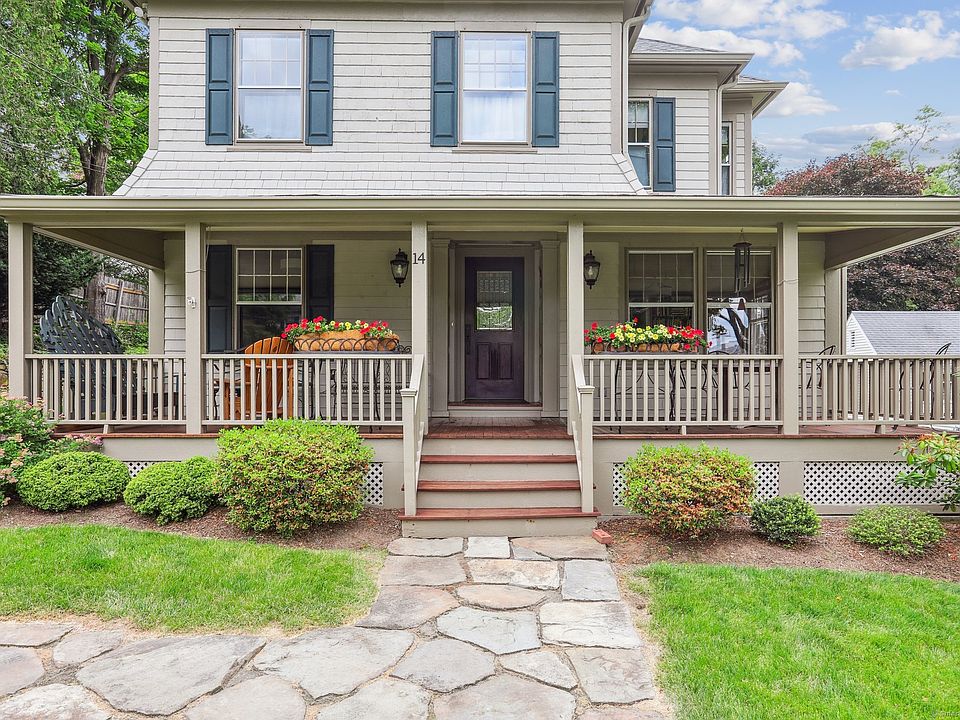 Impeccably renovated in-town antique 2-family home, ideal for multi-generations! Entering off the wide front porch, through the stained glass front door, are closets and a powder room opening to a gracious foyer. This will lead you in all directions - to the front sitting room or library, the living room and dining room, kitchen, or up to the second floor. While the home is currently being used as a single family, in the past these front rooms and 2 front 2nd floor bedrooms and one bath were 1 unit, along with a kitchen. The back unit has its kitchen on the first floor, with 3-4 bedrooms and 2 full baths on the second floor. There will need to be some minor reconfiguring to put it back to a 2-family. Hardwood floors throughout are in wonderful condition. There's a walk up attic and a large basement for storage. The home oozes the love the owners have put into it. 2 new condensers will keep you cool through the summer months. Walk to the green or Canterbury, and enjoy the breezes from your front porch while watching the sunset. The 3 bay carriage barn garage has 2 bays for cars, the middle bay holds shelving and space for tools and lawn equipment. There's also a pull down set of stairs to the 2nd floor.