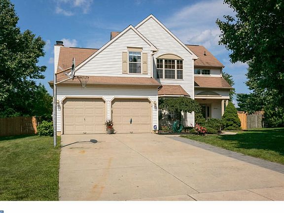 Welcome home to this 4 Br, 2.5 Bath Colonial home with a 2-car garage and an entertainer's backyard located in desirable "Summerhill". The Living Room entry welcomes you with neutral carpeting and crown molding. Adjacent to the LR is the Dining Room that is boasting with hardwood flooring, a bay window, and chair rail and crown molding. The eat-in Kitchen offers tile flooring, neutral white cabinetry, a bay window looking out to the backyard, all with a open flow leading into the Family Room. The FR has high ceilings, neutral carpeting, and french doors that open up into a generously sized Sun Room. Upstairs, the spacious Master Bedroom has a walk-in closet as well as a full Master Bath. There are three additional bedrooms that are a decent size and give plenty of natural light and a full bath that has an updated vanity and plumbing fixtures. Additional features: updated fence '17, updated pool filter '17, Anderson windows, a sprinkler system, upgraded patio, and Leyland Cypress Tree border along the rear of property. Conveniently located near Rt.130, I-295, and close proximity to bridges and Philadelphia. Make your appointment today!