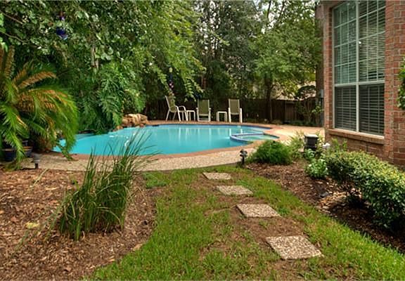 Highly desirable neighborhood of Herald Oaks. Short walk to Town Center shopping and Northshore Park activities! Wooded lot shades this beautiful brick home and sparkling pool. Features a unique floor plan with 3 living areas and an extra room for exercise, media, hobby or 5th bedroom. Great schools!
