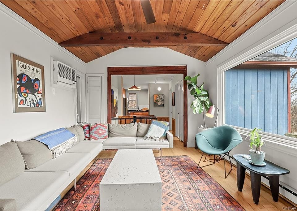 A delightful retreat tucked away on the hillside. Absolutely charming cottage fully updated. Very private location adjacent to protected land. Surrounded by stone walls with front stone patio with treetop views. Cozy house with Bedroom with cathedral ceiling, Full Bath, Living Room with brick Fireplace, and Kitchen on upper level. Lower level Guest Room or Family Room with Gas Stove Fireplace and Full bath plus Laundry and workshop area. Great weekend house just 70 minutes to NYC and close to Metro North and highways. Partial lake views and access to Lake Carmel.