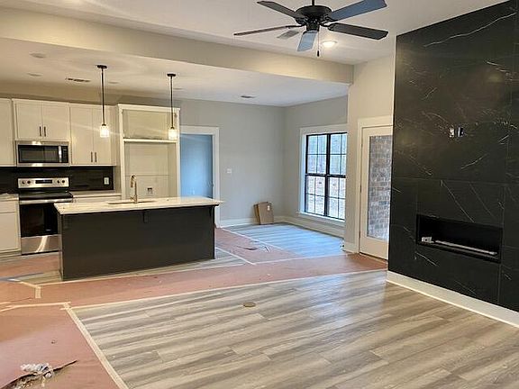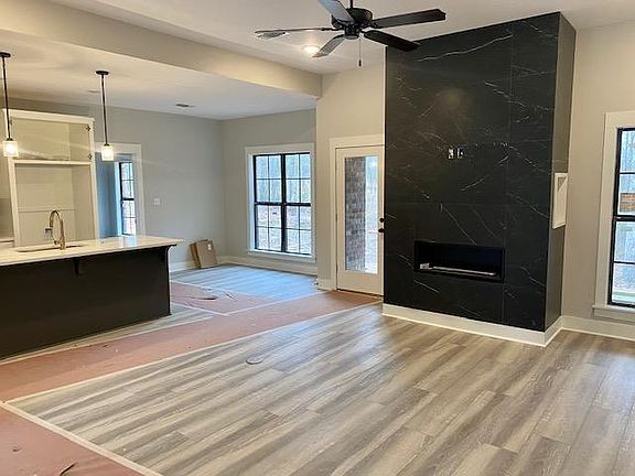 You wanted something sleek, modern, and different in a new home, so Kyle Hamlett Construction has delivered! The exterior will be painted white as soon as the weather clears up and it will complete this classy home. Interior Designers from Anderson's knocked it out of the park with the fireplace that looks like a piece of art in this open plan home. A formal dining has a large picture window, kitchen has sleek cabinetry with beautiful hardware and gorgeous granite. Smart design has a laundry room that connects to the primary closet. Location is key because it's in OG Longleaf Elementary school district.