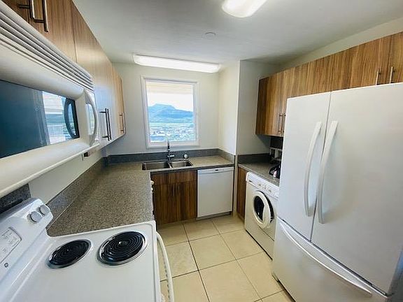 Enjoy breathtaking ocean, mountain and city views from this upgraded 2 bedroom condo in the heart of Kailua. This unfurnished unit is located on the 10th floor in one of the few high rises in beachy Kailua town. Relax on your private lanai with beautiful ocean + mountain views and cooling trade wind breezes. This 2 bedroom, 1.5 bathroom is bright, airy and spacious. *Renovated open concept kitchen with quartz countertops and beautiful cabinets with lots of storage *All appliances including washer/dryer right inside the unit, a large French door refridgerator, dishwasher, oven/stove and built-in microwave *Fresh new paint throughout the unit *1 reserved covered parking stall on the ground floor in a secured parking garage *Ocean views from master bedroom, living room, kitchen and lanai *Tranquil mountain views from kitchen, 2nd bedroom and entryway *Jack & Jill bathroom *Open concept floor plan with lots of natural light and a great cross breeze from the trade winds *Storage locker on ground floor Take a dip in the refreshing pool or sunbath on the pool deck that offers fabulous views of Kailua and Olomana. Rarely available! Meridian East is a safe and secured building conveniently located right in the heart of Kailua town. This prime location is an easy walk or bike ride to the famous Kailua and Lanikai Beaches plus walking access to cool local restaurants & shops, Whole Foods, Target, UFC gym, yoga studio, schools, tennis courts, Kailua District Park and so much more. A bus stop and access to the Pali Highway is one block away. A five minute drive to MCBH and the H3 freeway. Pet friendly! A cat or a small dog weighing less than 25 lbs. are welcome with a pet deposit. Available starting November 19, 2022. Monthly rent of $3,100 includes one reserved parking space plus all utilities except WIFI and electricity. Preferred lease is 12 months. First month's rent and security deposit equal to one month's rent is required to move in. Sorry no smoking and no Section 8. Non-refundable application fee is $35 per adult
