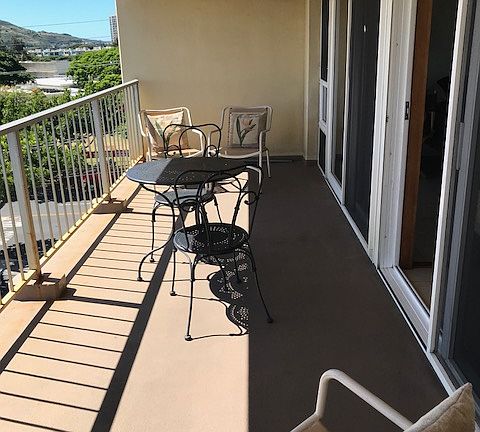Meridian East. Cool and breezy end unit with double lanai. Furnished 2 bedrooms, 2 full baths with 1 covered parking approximately 951 square feet of living space. Centrally located walking distance to almost everything; restaurants, shops, library, and more. Most of all enjoy one of the best beaches in the world just minutes away. Beautiful ocean and mountain views from your large covered lanai. Remodeled kitchen and upgrades. Secured building and parking. Includes water. $2,200/month