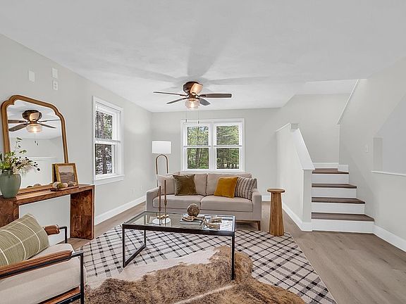 Beautifully renovated single-family home with a legal in-law studio apartment! Nestled on over an acre in a serene cul-de-sac, this property offers an unbeatable location. The main house features four bedrooms and two bathrooms, providing ample living space. The in-law studio has a private entrance, a brand-new kitchen, and a bathroom. Step inside to an open concept layout filled with natural light. The meticulous attention to detail is evident with recessed lighting, elegant fixtures, and modern ceiling fans. The updated kitchen boasts sleek granite countertops and top-of-the-line stainless steel appliances. New vinyl plank flooring throughout ensures easy maintenance. A back deck off the kitchen overlooks the spacious backyard, perfect for outdoor gatherings. The detached two-car garage includes a 200 AMP service and its own meter, ideal for a workshop. This home is 15 minutes from the seacoast and move-in ready! *Seller is a licensed broker in the state of MA, ME & NH. Seller is not acting as a broker in this transaction.*