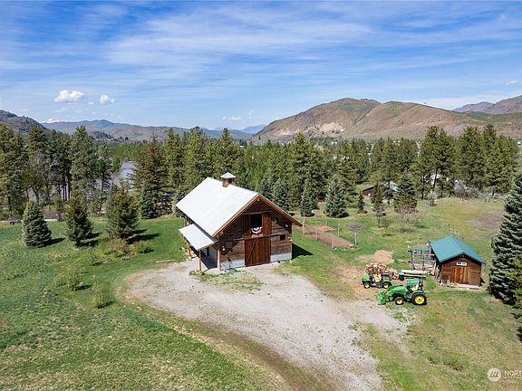 Unique barn-style home on 5+ irrigated acres w/views of Mt. Gardner, Leecher & McClure Mountains. Very private with peek-a-boo river views. Timber frame home designed by famed architect Brice Butler, built by Jeff Patterson. The high quality of design & construction are evident throughout. Walls of windows in the great room bring the outdoors inside. Living spaces are flexible & inviting from the practical kitchen/dining areas to the cozy seating spaces. Radiant floor heat plus cozy wood stove. Main floor has 1 bedroom, 1 full bath plus laundry. Primary bedroom, office space, ¾ bath & walk-in closet are in loft. Plus bonus loft room above garage. Very well insulated. Large "Hot Dawg" propane heater w/fan in garage & bonus loft.