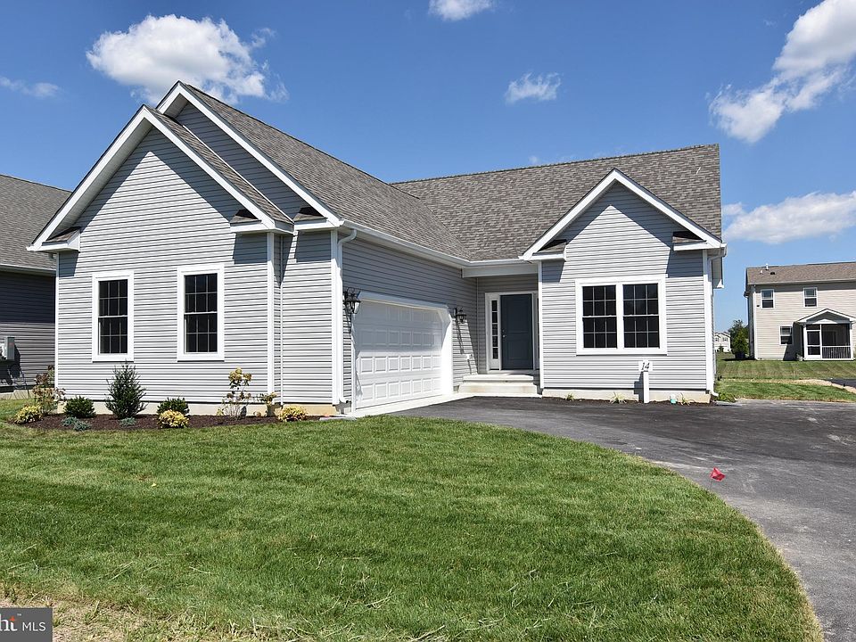 Price Reduced! The Stonehurst Model, new construction and ready for immediate delivery! Distinctive gabled roof design over the covered front porch make this exterior perfect for this traditional 3-bedroom, 2-bath ranch. Front Door with side lights brightens the foyer that opens to the spacious great room, dining area and kitchen. The large galley kitchen offers counter height breakfast bar that easily fits 5 stools. The generous master suite, brightened by twin windows, is secluded for privacy and has a large walk-in closet and full bath. The master bath features double bowl vanity, 5’ shower and large linen closet. The two secondary bedrooms are sizable and offer large closets and share the hall bath. Oversized 2 car garage great for storage, workshop or 2 large cars.