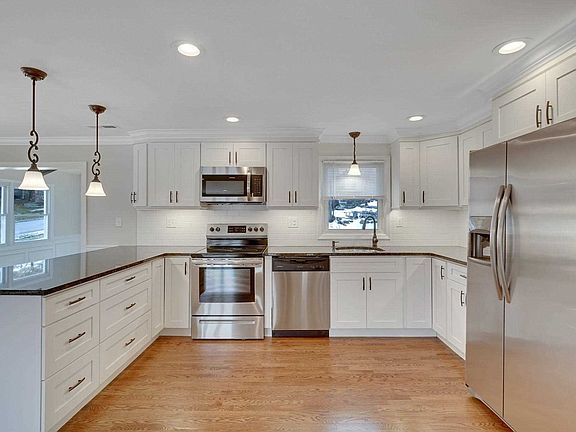 BETTER THAN NEW! Extensive high end renovations have just been completed, all this house needs is a new owner! Exterior updates: brand new vinyl siding, gutters, new garage door. Interior updates: brand new open concept kitchen (cabinets, granite counters, stainless steel appliances), new bathrooms, hardwood floors on the main floor and carpeting downstairs, lighting, custom moldings throughout. Mechanicals: electrical (200 amps), thermostat, central A/C, brand new furnace (gas heat, converted from electric), water heater, attic insulation, and more. The home is freshly painted in designer colors and ready for your finishing touches! Contemporary open layout with two family rooms and extra den on the lower level affords great space for family living and holiday entertaining. Fantastic location close to all! Municipal water/sewer and super LOW taxes - only $6,012 after STAR!!