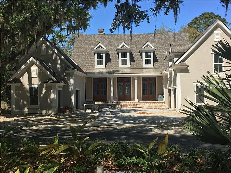 New construction! Great Lowcountry style home with high pitched roof and conventional hard stucco siding in combination with board and batten hardie plank siding. Open split floor plan with separate 1st floor master suite and office. Open kitchen and dining room that capture a fairway view, walk in pantry off of kitchen, vaulted great room ceiling with exposed beams. Two guest suites and bonus room over the garage. Large screen porch with herringbone brick flooring, outdoor kitchen, bar and fireplace. Green features include: Low VOC paints & spray foam insulation.
