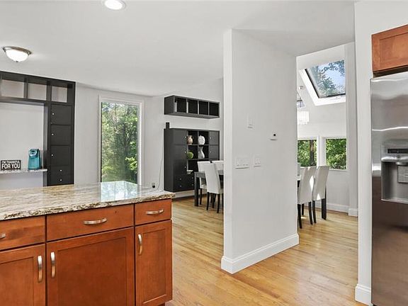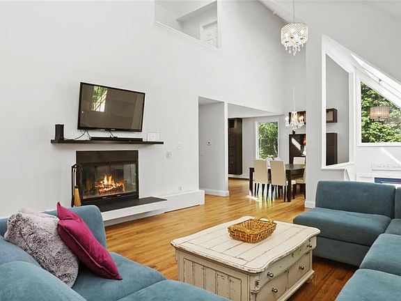 This Contemporary home sits on 2 acres of land and is the only home at the end the cul-de sac. Featuring a main level with an open floor plan with natural light pouring in from every direction, this 3 bedroom, 2 full and 2 half bath house has it all. Your eyes are immediately drawn to the vaulted ceiling and wood burning fireplace in the spacious living room. Off the living room is access to one of your three decks. The kitchen comes equipped with granite countertops, stainless steel appliances, and is finished with beautiful cabinetry. The main level master bedroom suite is highlighted by its own private deck with built in hot tub, large walk in closet and full bathroom. The fully finished basement offers endless options, one being a potential in-law suite with half bath. Walk out through the sliding doors onto the large backyard patio. There is a 2 car attached garage. There is plenty of additional storage with a detached shed. The level grounds are great for entertaining, gardening, fire pit fun, and just enjoying being outside. Only 5 minutes from Lake Lillinonah, 5 miles from Candlewood Lake, and 5 minutes to the Brookfield Center!