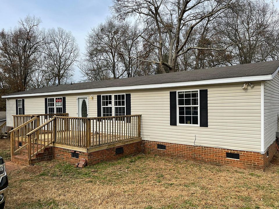 PLEASE READ ENTIRE AD FIRST! MOST QUESTIONS ARE ANSWERED HERE Spacious and clean 3 Bedroom 2 Bath 14 BARNHART LANE FOUNTAIN INN SC 29644 I will update the pictures as the work is completed. Flooring almost complete AVAILABLE OCTOBER 22, 2024 We will remove the ad when the home is rented-PLEASE DO NOT ASK IF IT IS STILL AVAILABLE! Drive by the home, LOOK THROUGH THE WINDOWS, Check out the neighborhood. If further interest text your email address so we can get you prequalified FIRST by sending you an application to fill out at no charge. Since we are an hour away we ask that you fill out the application FIRST before we drive and hour to show the inside and waste your and our time. For an APPLICATION, text YOUR Email Address ONLY to the number listed AND Send a 2nd text "14" and we will email you an application Heat Pump and Central Air ALL ELECTRIC 1/2 acre Lot Newer Luxury Vinyl Plank Flooring Throughout Freshly Painted STOP Watching your 401K or retirement plan DISAPPEAR Put it to work with a roof over your head 2002 Manufactured Home Double Wide 1680 square feet Permanent Brick Foundation Eat-In Kitchen with plenty of cabinets and center island, French doors leading into the spacious Family room Private Master Suite with Large Walk-In closet Large master Bath with Large Tub and 2 sinks ALL ELECTRIC Public water Laurens Water and Laurens Electric NO BANK QUALIFYING OWNER FINANCING Available for Rent to Own with $4,000 Option Fee plus $1,495 per month rent. We will credit $100 per month of the $1,495 payment and apply that towards a purchase price of $229,900 any time over the next 2 years. We will hold the financing on a 30 year term after 24 payments have been made on time. NO CREDIT CHECK NO BANK QUALIFYING! TOTAL MOVE IN REQUIRED-$5,495 plus verification of income. (at least 2 years at job) Rental Only is $1,495 First month rent plus $1,495 Security Deposit PLUS $1,495 last month Rent. TOTAL MOVE IN NEEDED-$4,485 plus verification of income Additional deposit will be requested if less than 2 years on job, Moving in from out of the area, self employed, previous eviction/collection action, etc. Spacious Family Room AND Living Room ANIMALS CONSIDERED AT EXTRA COST and absolutely NO VICIOUS BREED DOGS per insurance company $30 per month per animal additional plus $300 Non refundable Pet Fee per animal whether inside or outside NO We will NOT work with you on the Security Deposit No Section 8 Call Rob Owner provides Range and dishwasher only. Resident supplies Washer dryer refrigerator and microwave. Resident pays their own utilities and lawn maintenance.