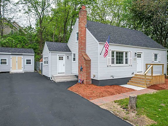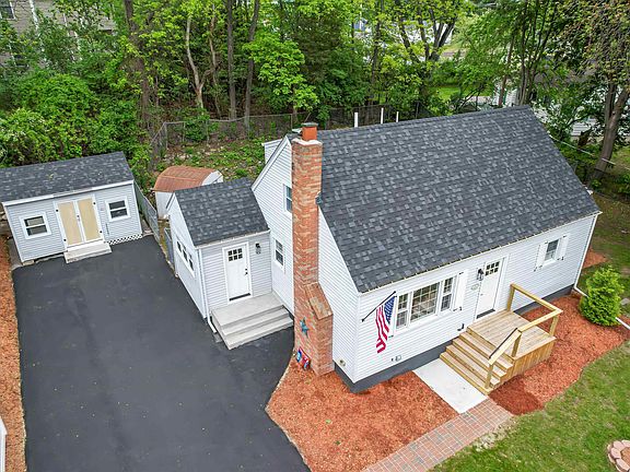 This beautifully renovated 4-bedroom Cape blends classic charm with modern comfort. Gleaming hardwood floors flow throughout, setting the stage for a warm and inviting interior. At the heart of the home is a stunning shaker-style kitchen with stainless steel appliances and a spacious peninsula, perfect for casual meals or entertaining. The open layout flows seamlessly into a cozy living room with a crackling fireplace. The first floor features two bedrooms, a full bathroom with custom tiled bath and LED-lit inlay shelving, and a generous mudroom with washer/dryer hookups. A bright family room opens directly to a brand-new oversized deck with sleek cable railings—ideal for outdoor living. Upstairs, you'll find two large dormered bedrooms with ample closet space and another full bath boasting a custom tiled walk-in shower and ambient LED lighting for a spa-like feel. The finished basement expands your living space with a media room, office area, and extra storage. This home has been updated with a new roof, new windows, and new decks, offering peace of mind and enhanced curb appeal. These upgrades provide improved energy efficiency and great outdoor living space. The fully fenced backyard offers privacy and versatility with a charming "she-shed" equipped with electricity, great for hobbies, work, or relaxing. A utility shed adds extra convenience for tools and storage. This home offers exceptional style, thoughtful updates, and flexible spaces for today’s lifestyle.